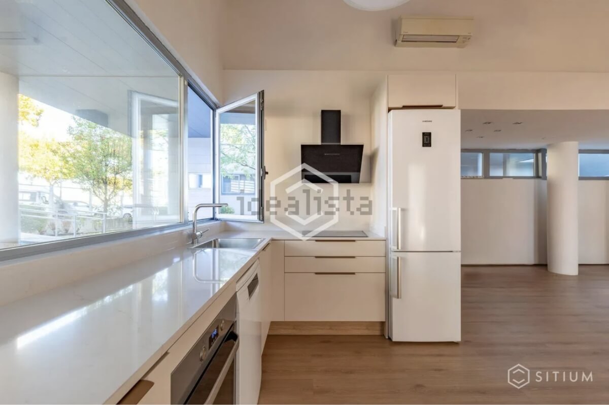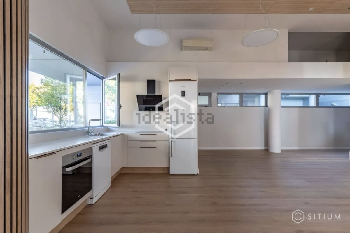 El nuevo diseño prioriza la amplitud y la versatilidad, con un gran espacio diáfano que integra una cocina completamente equipada con electrodomésticos nuevos de última generación, perfecta tanto para el uso diario de los empleados como para pequeñas reuniones informales. Además, el loft dispone de dos salas independientes separadas por tabiques, ideales para despachos, zonas de reuniones o trabajo en equipo.