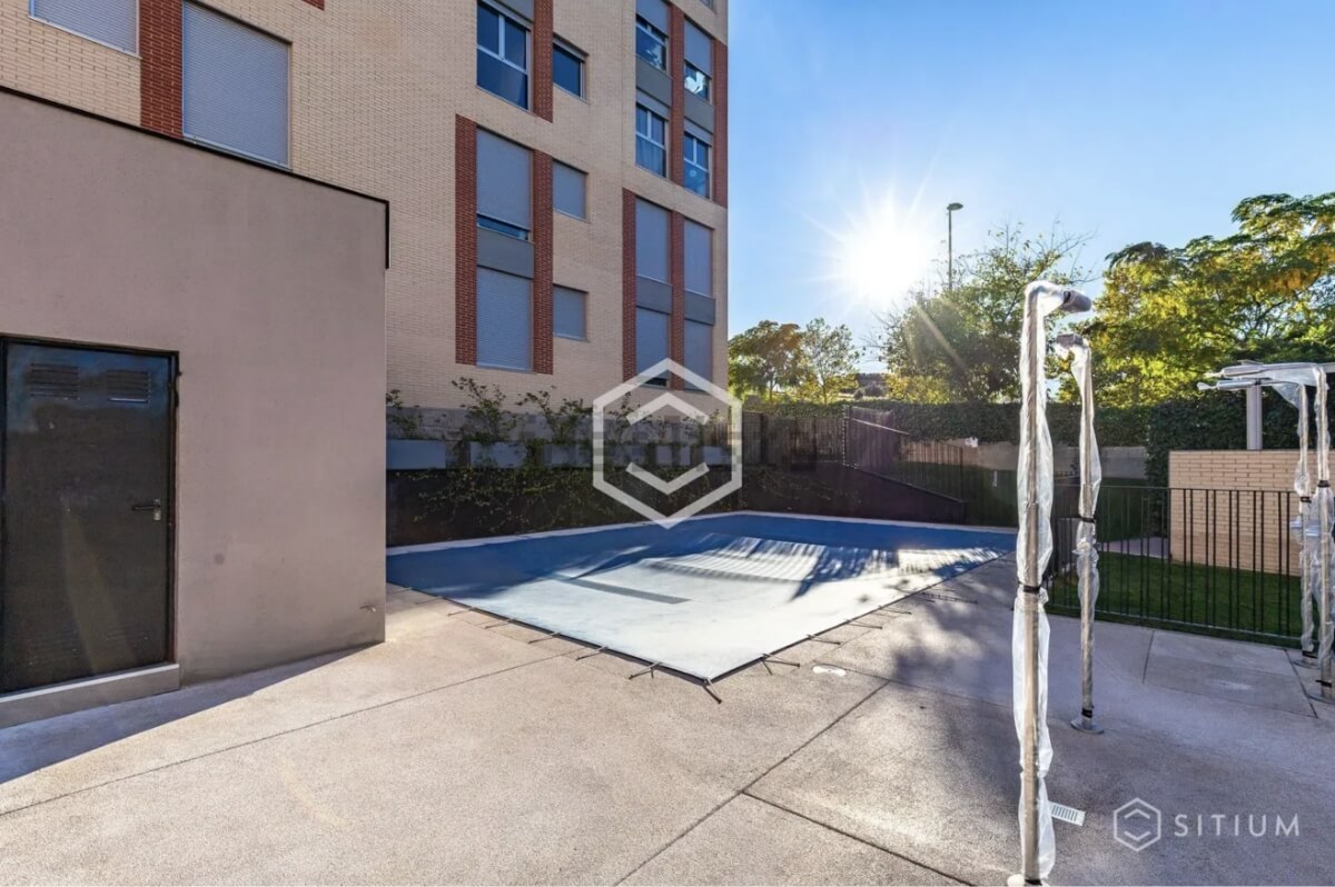 El edificio ofrece zonas comunes pensadas para el descanso y el ocio. En el interior de la urbanización hay una piscina rodeada de zonas ajardinadas, ideales para disfrutar del buen tiempo. También dispone de una pista de pádel y una mesa de ping-pong para practicar deporte sin salir de casa. Además dispone de varias zonas para aparcar las bicis, lo que hace muy cómodo su uso, así como de taquillas inteligentes para la recepción de paquetes.